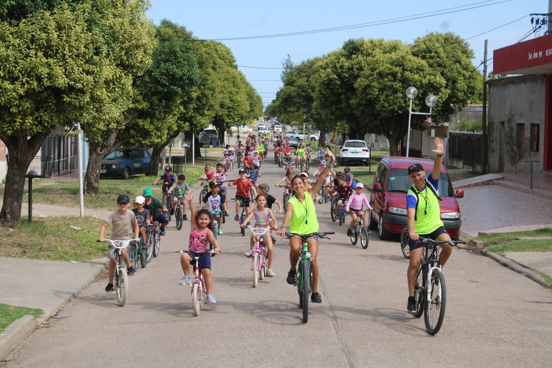 Como parte de las actividades programadas, todos los grupos de la colonia realizaron una bicicleteada por el pueblo.
