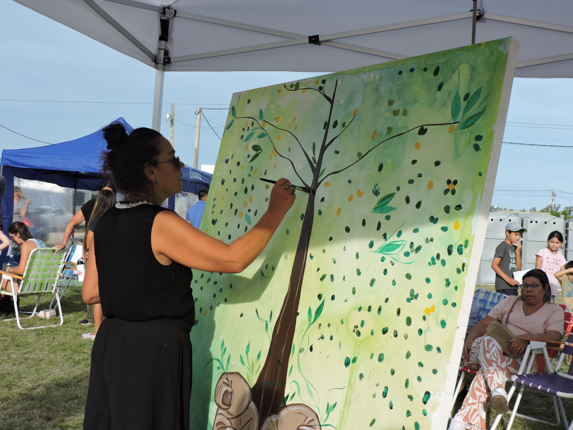 La artista seguiense Jacqueline Rodríguez realizó la obra “Árbol de Huellas de Vida”, durante la Jornada de Seguí Late.